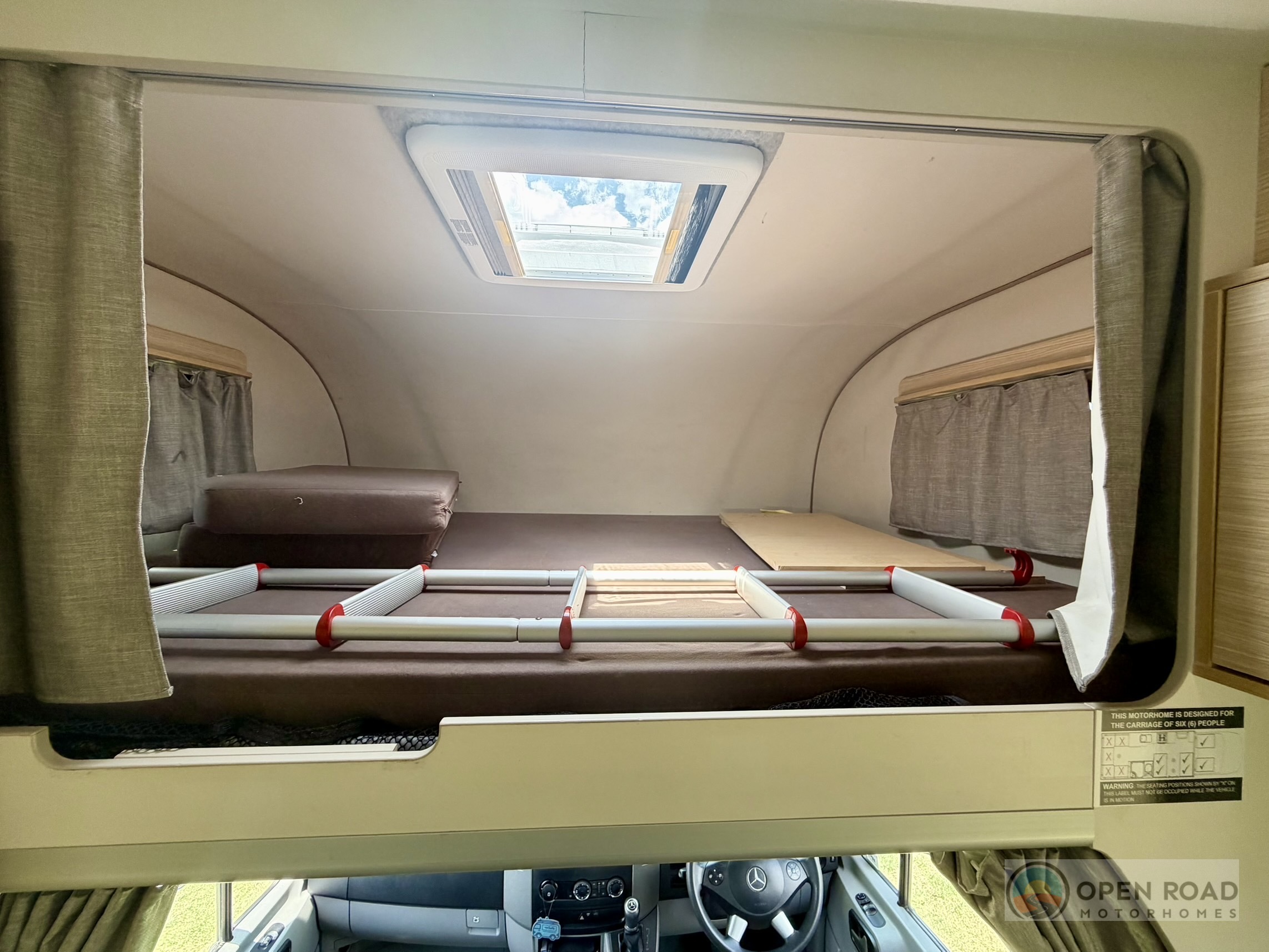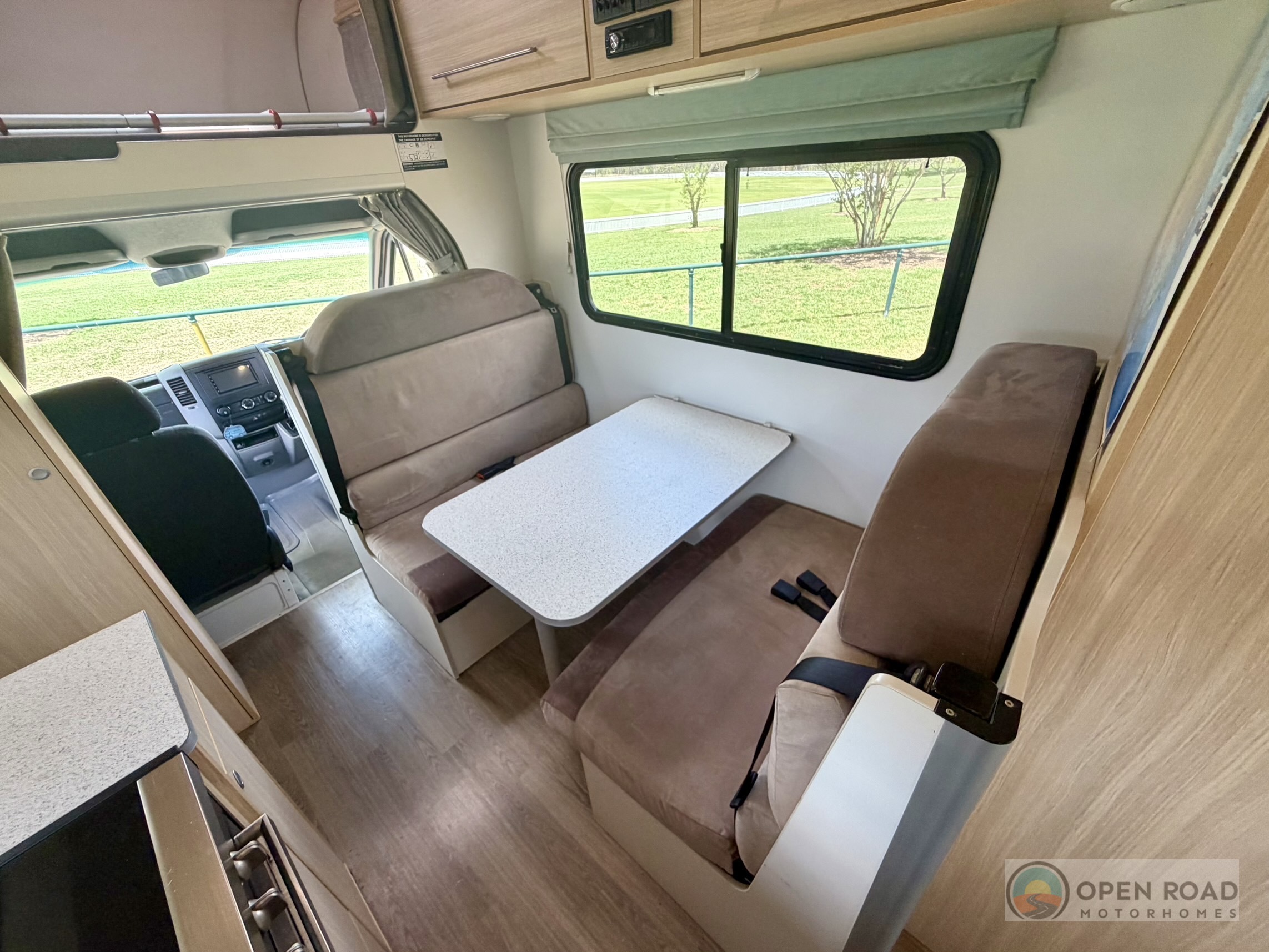 - FRONT LOUNGE AREA incorporates driver & passenger swivel seats and belts for passengers.