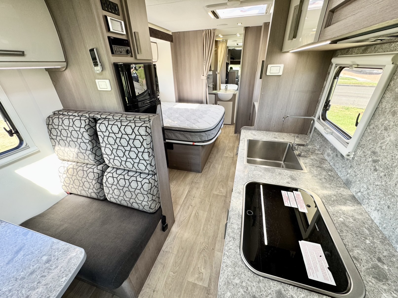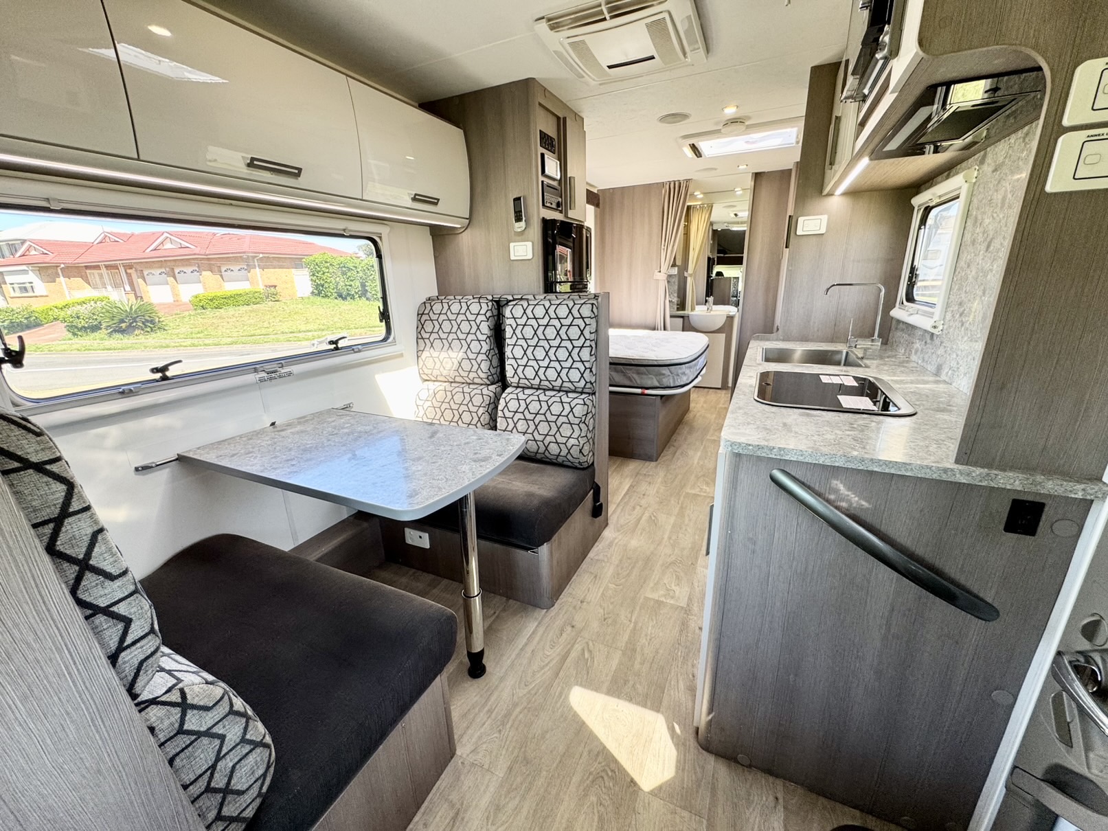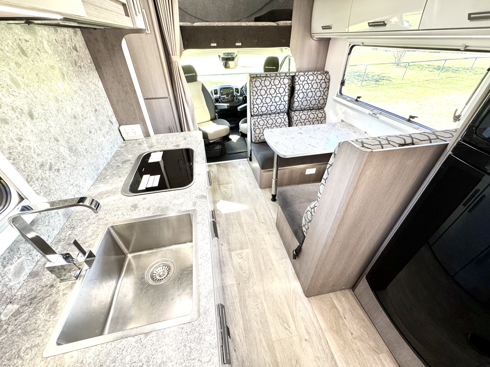 Built on the powerful and fuel-efficient 2.3L Turbo Diesel Fiat Ducato, paired with the smooth 9-speed automatic gearbox, this motorhome delivers effortless driving across city streets, coastal highways, or rugged Outback adventures.