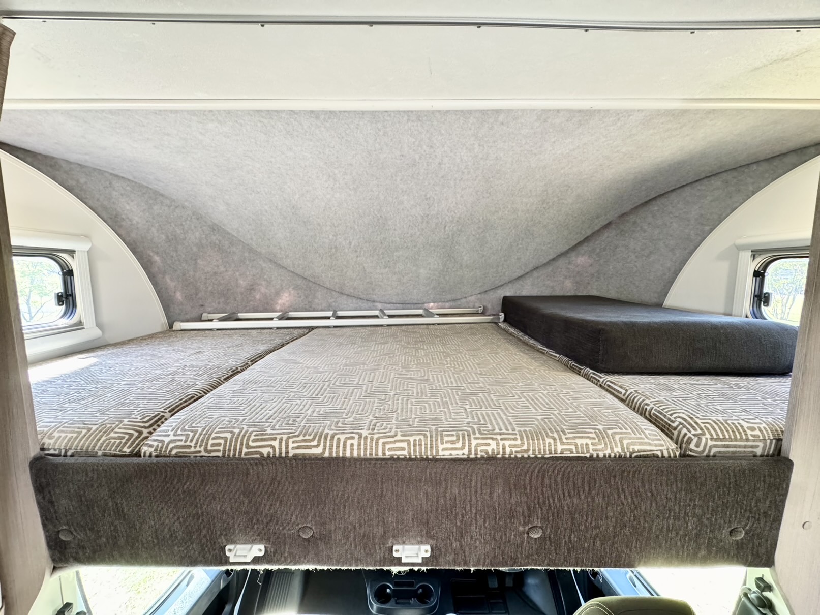 ✔️ Second Double Bed above the driver’s cabin plus additional sleeping options—room for everyone!