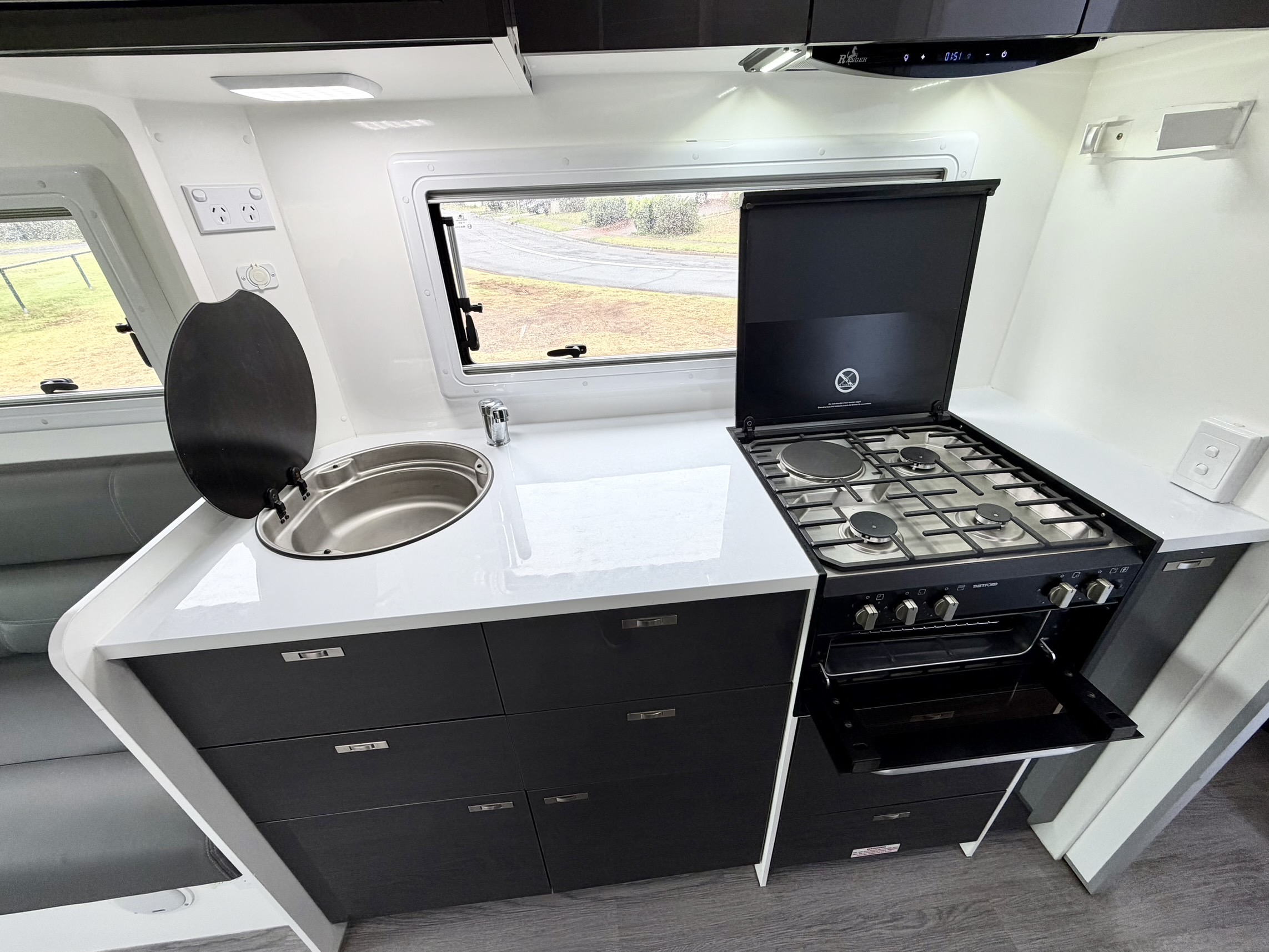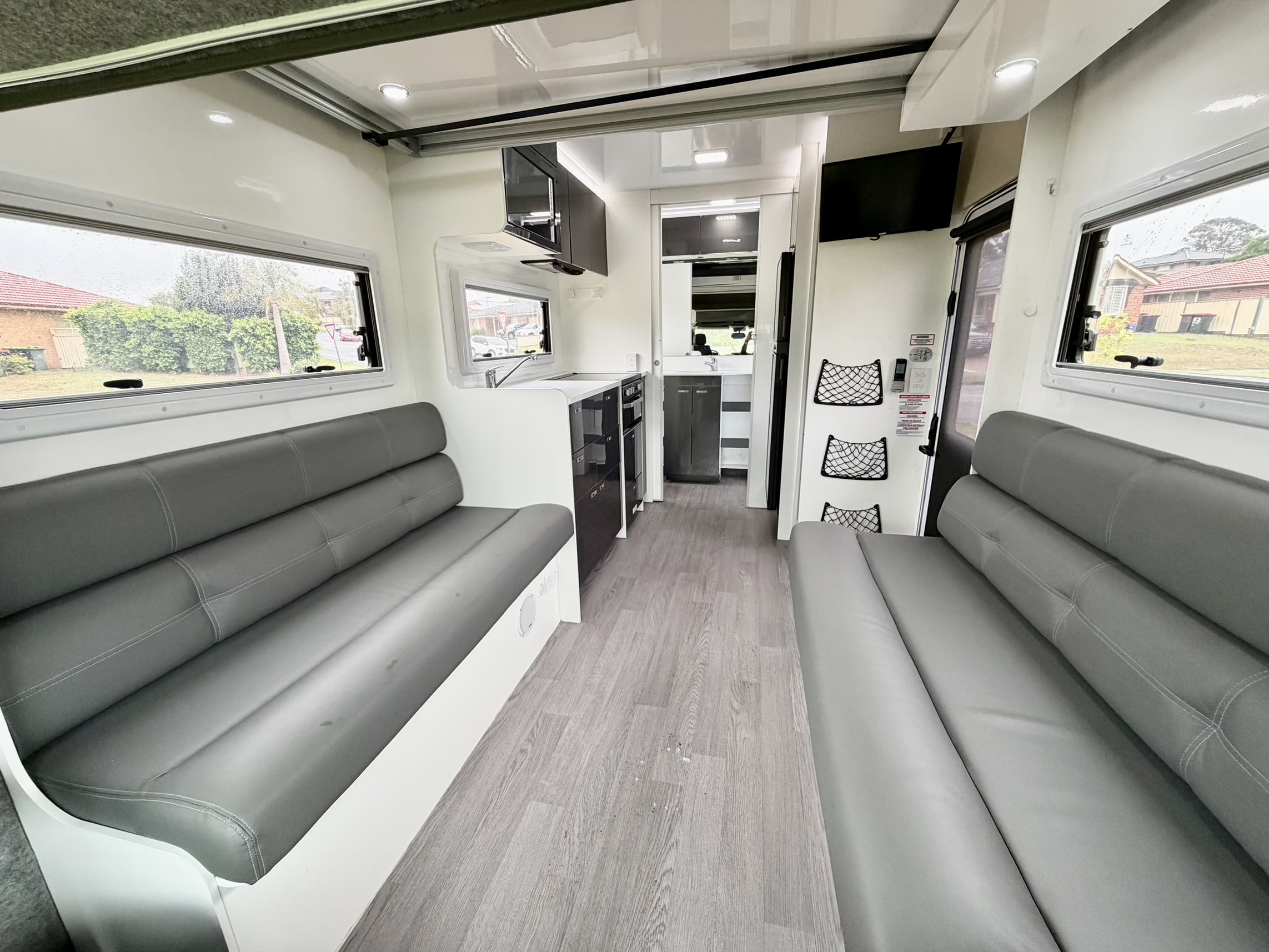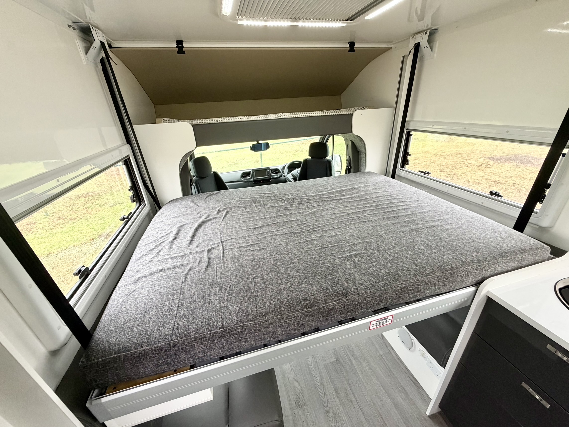 A fantastic design that gives loads of internal space yet is very compact and easy to drive and park. This clever layout provides a HUGE HOME STYLE LOUNGE and at the push of a button, a LARGE BED lowers down from the ceiling.