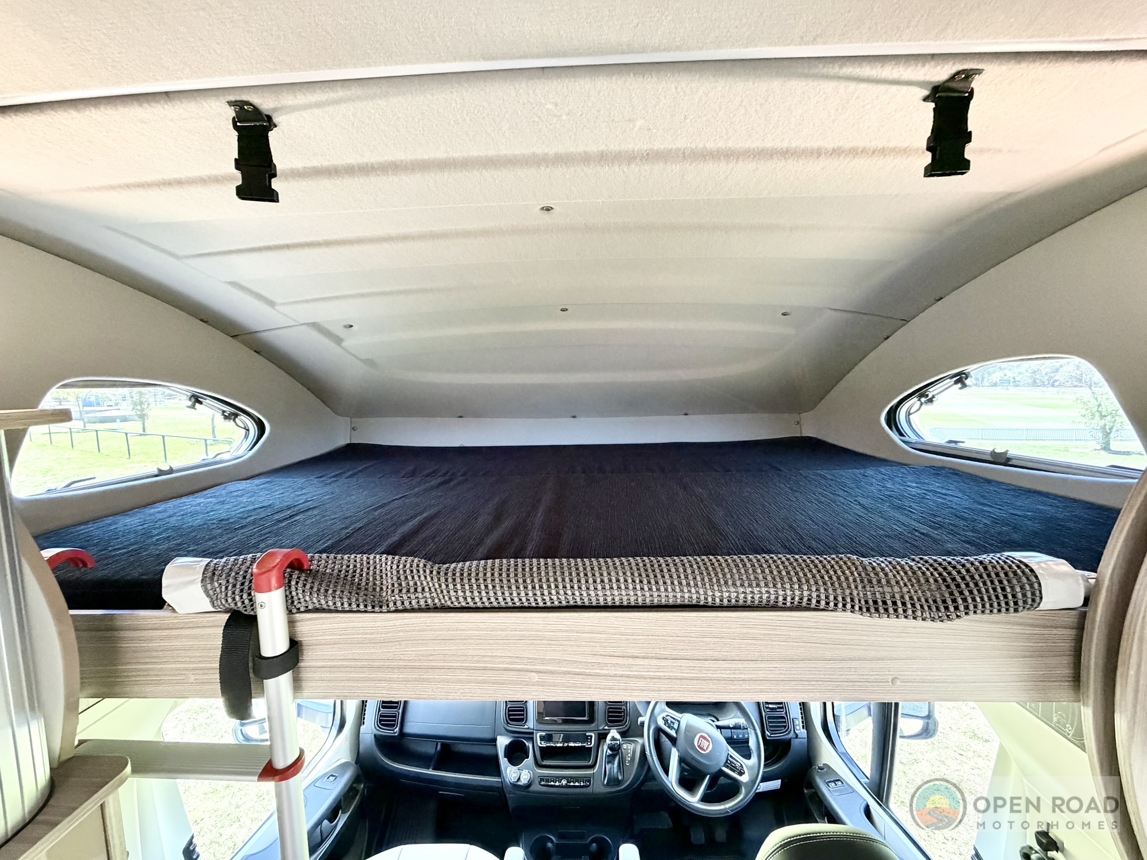 - Second double bed above the driver’s cabin.