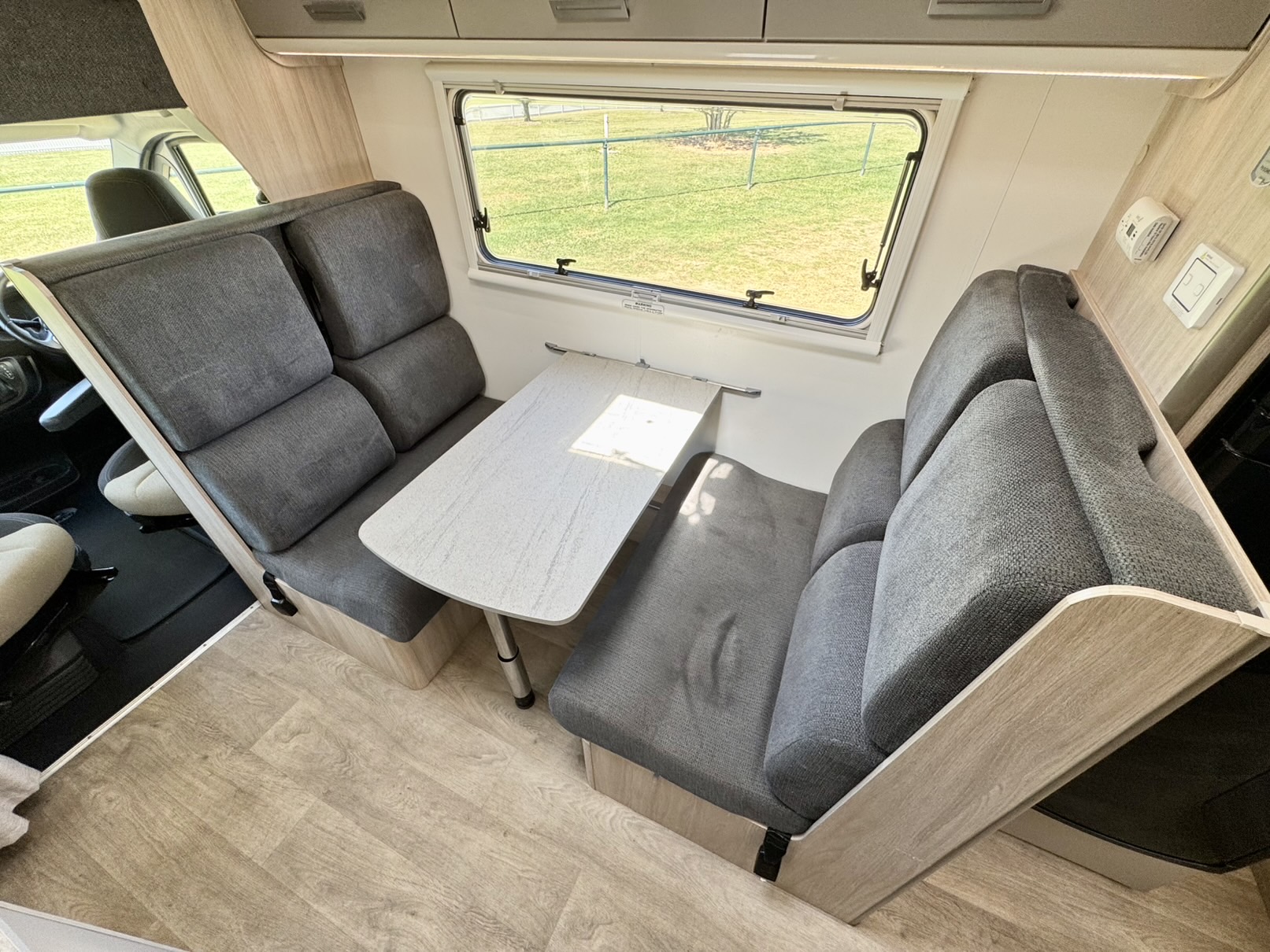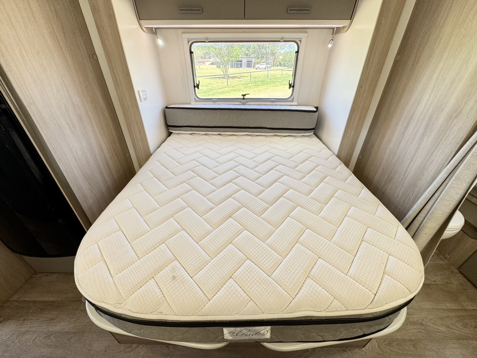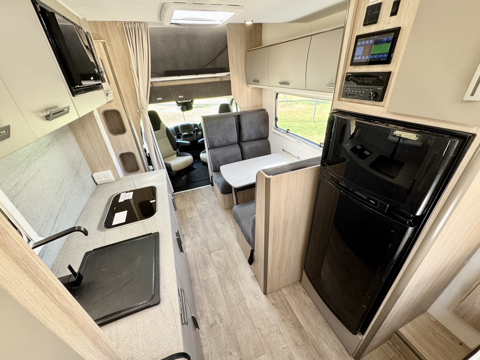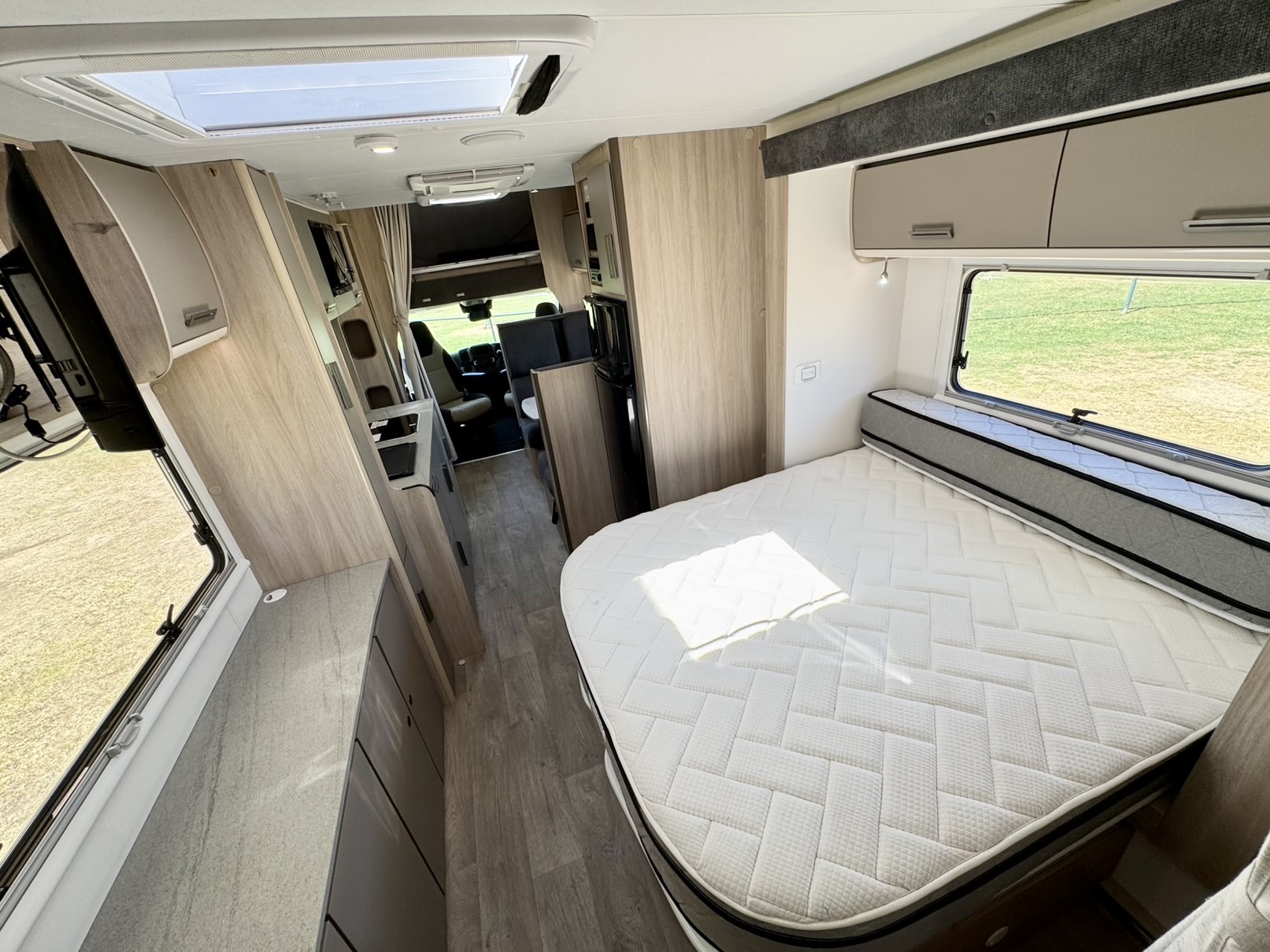 The second double bed above the driver’s cabin provides extra sleeping space, while the 2.3L turbo diesel Fiat Ducato engine paired with a 9-speed automatic gearbox delivers smooth, powerful, and fuel-efficient performance wherever the road takes you.