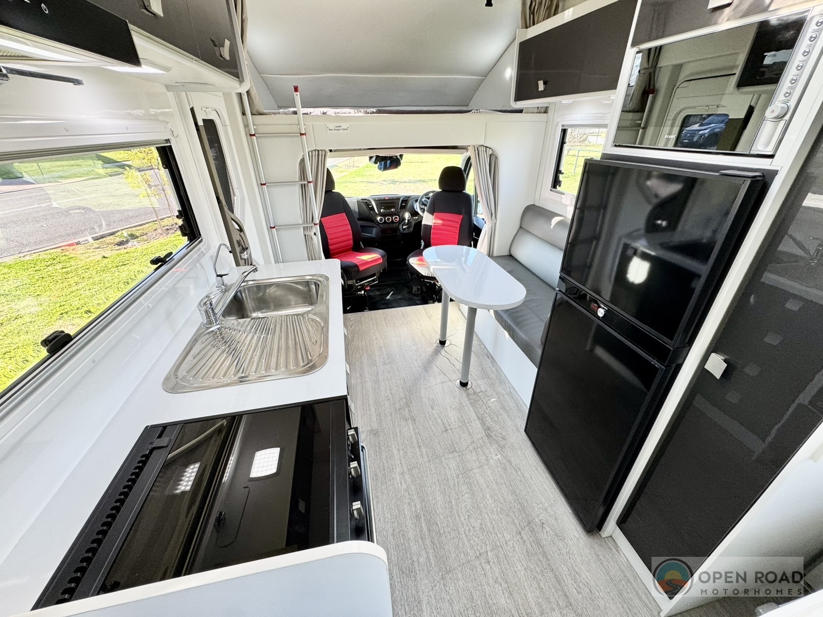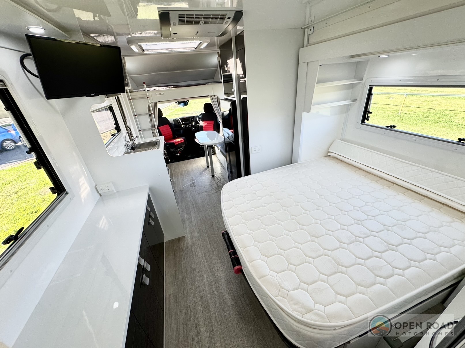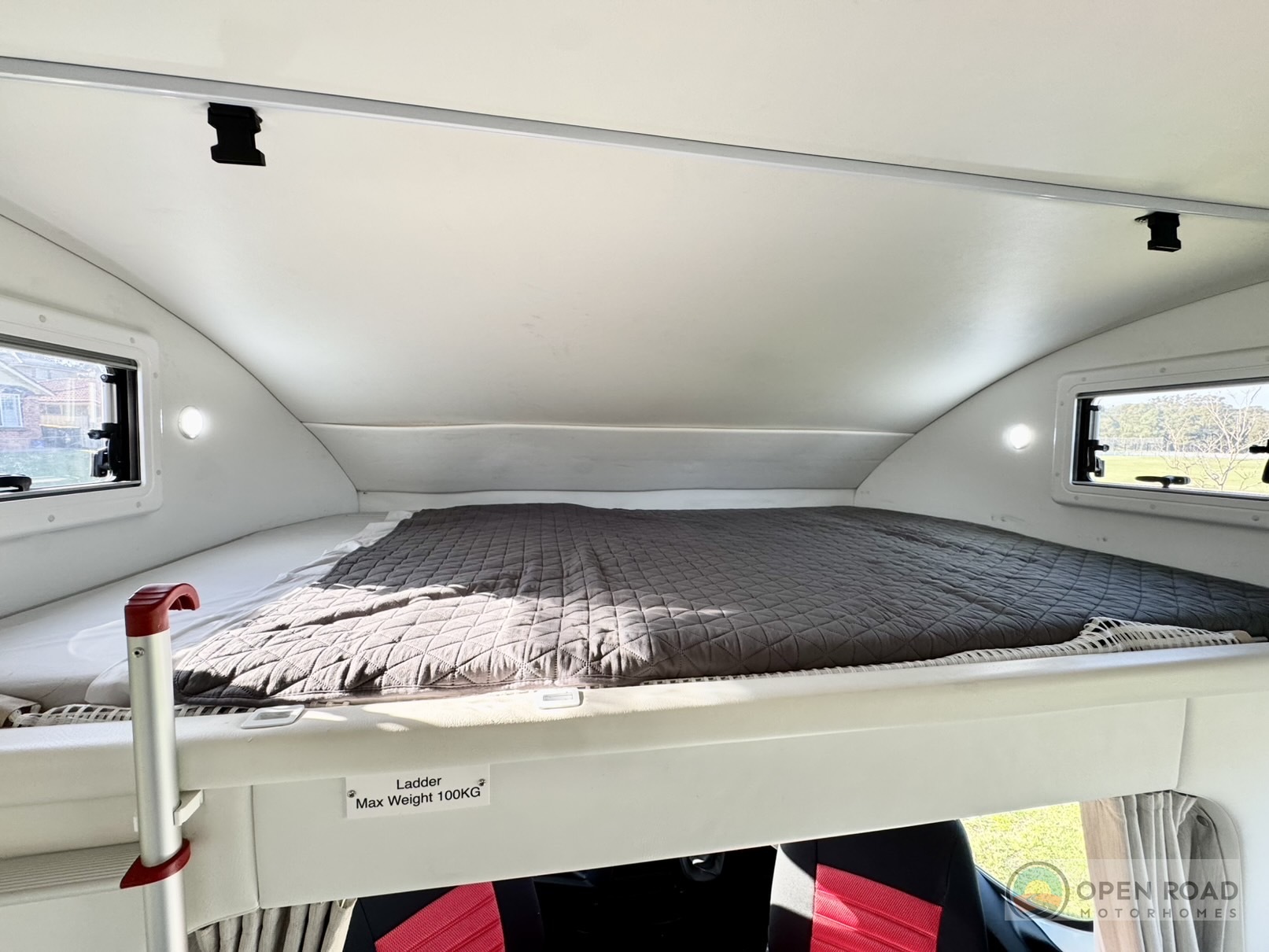 - 2nd Large double bed above the drivers cab for extra storage or guests.