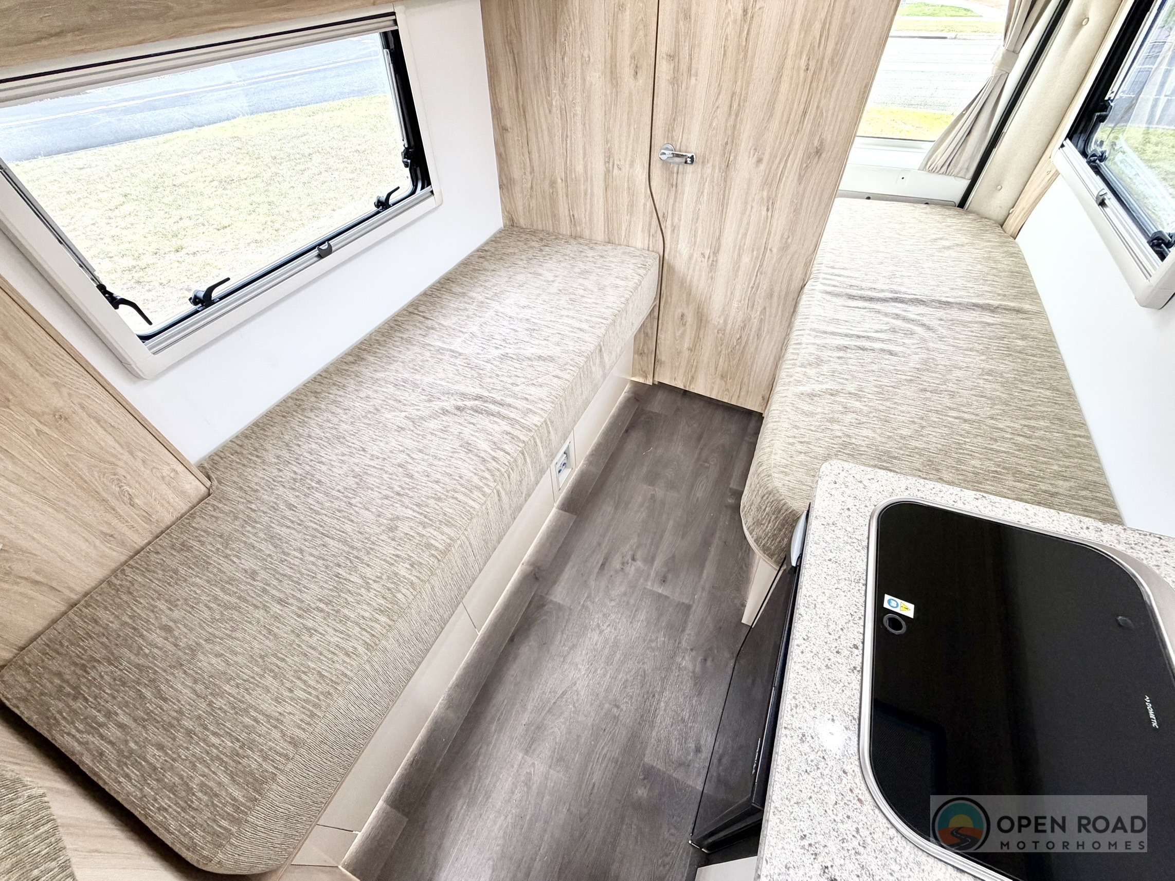 Be quick to secure this highly sought after motorhome. This Avan Applause with comes with 2 FULL SINGLE BEDS, large bathroom, fully fitted kitchen and comfy 4 seat dining area.