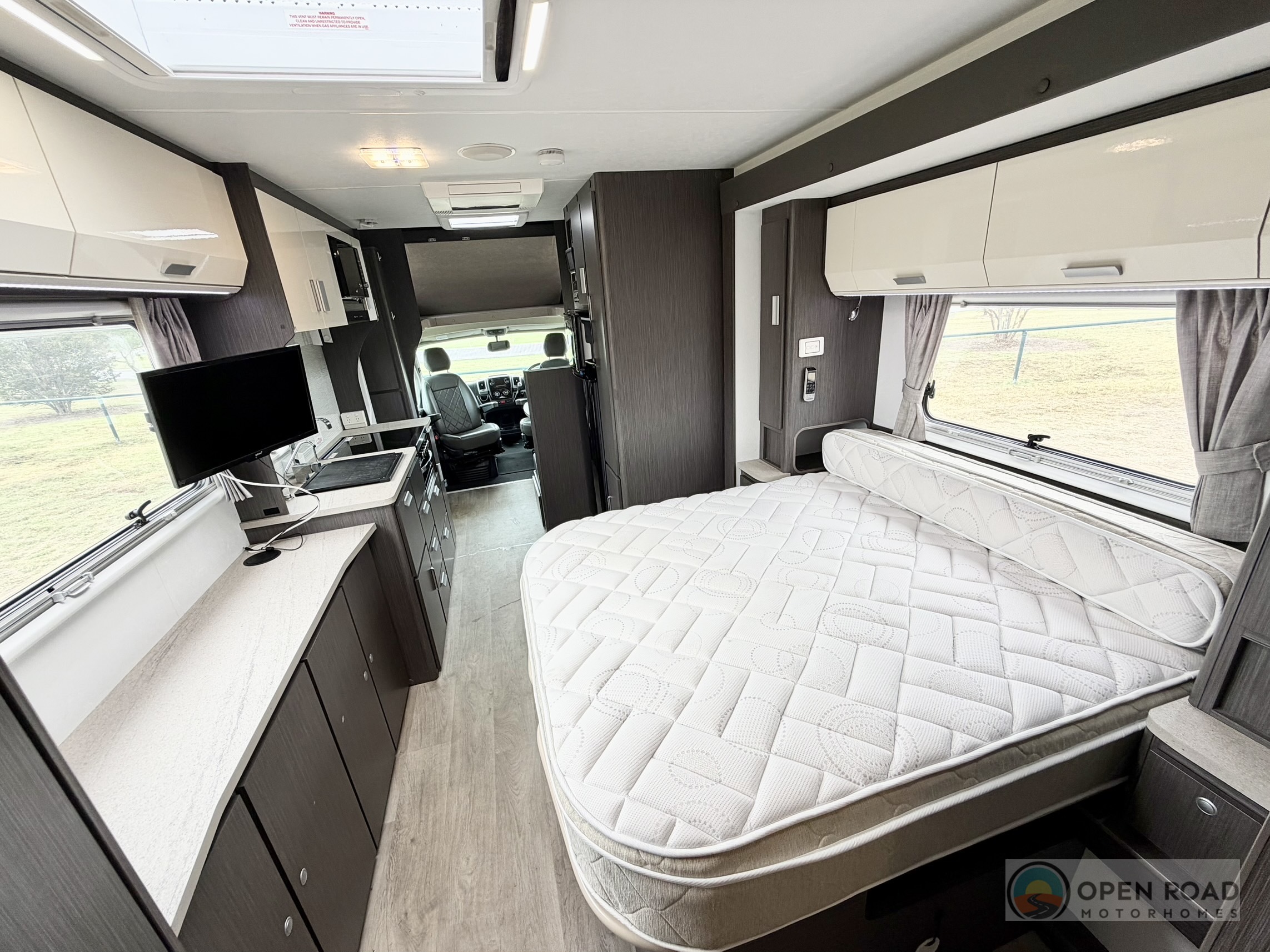- 2nd Large double bed above the drivers cab for extra storage or guests.