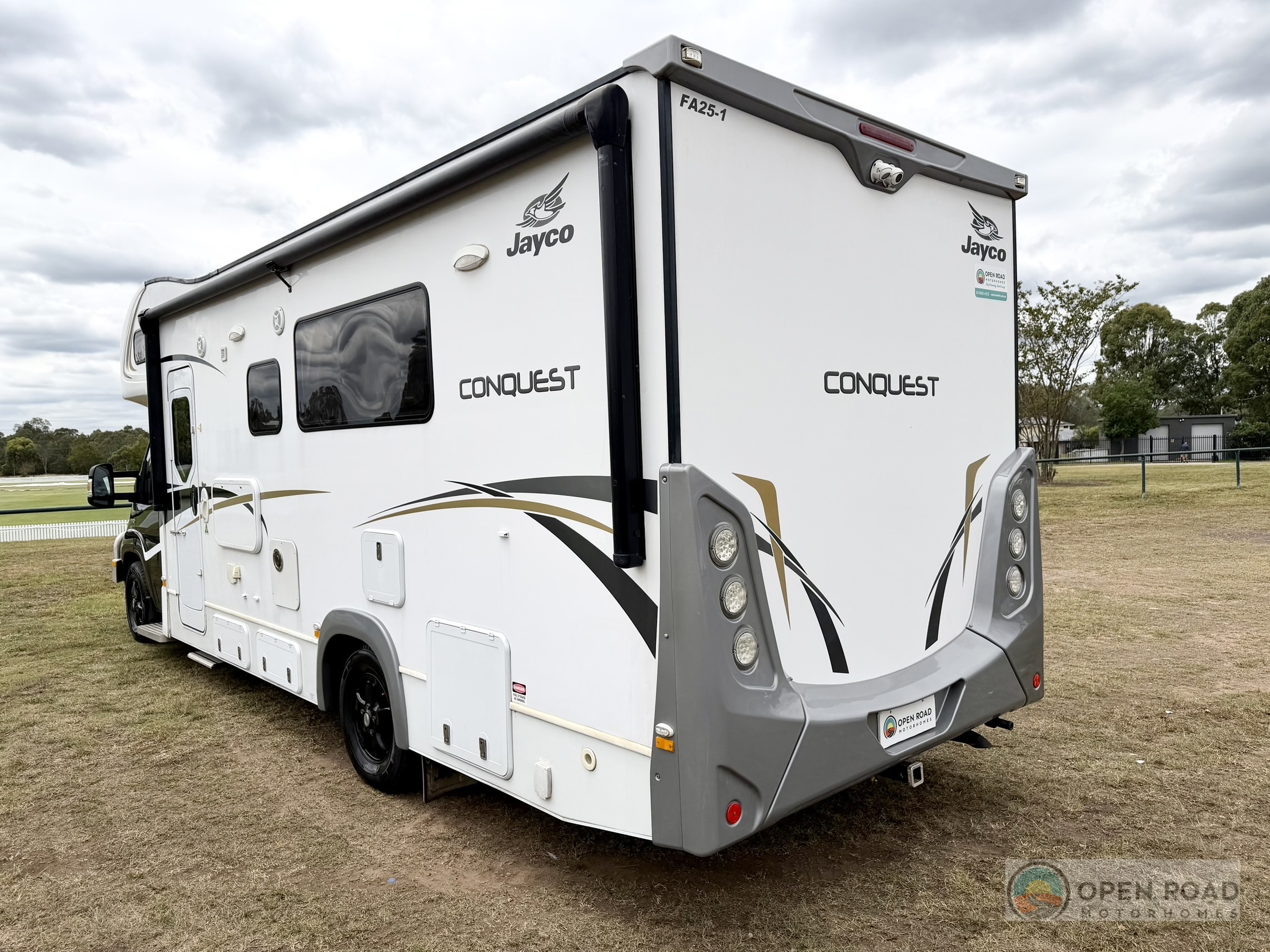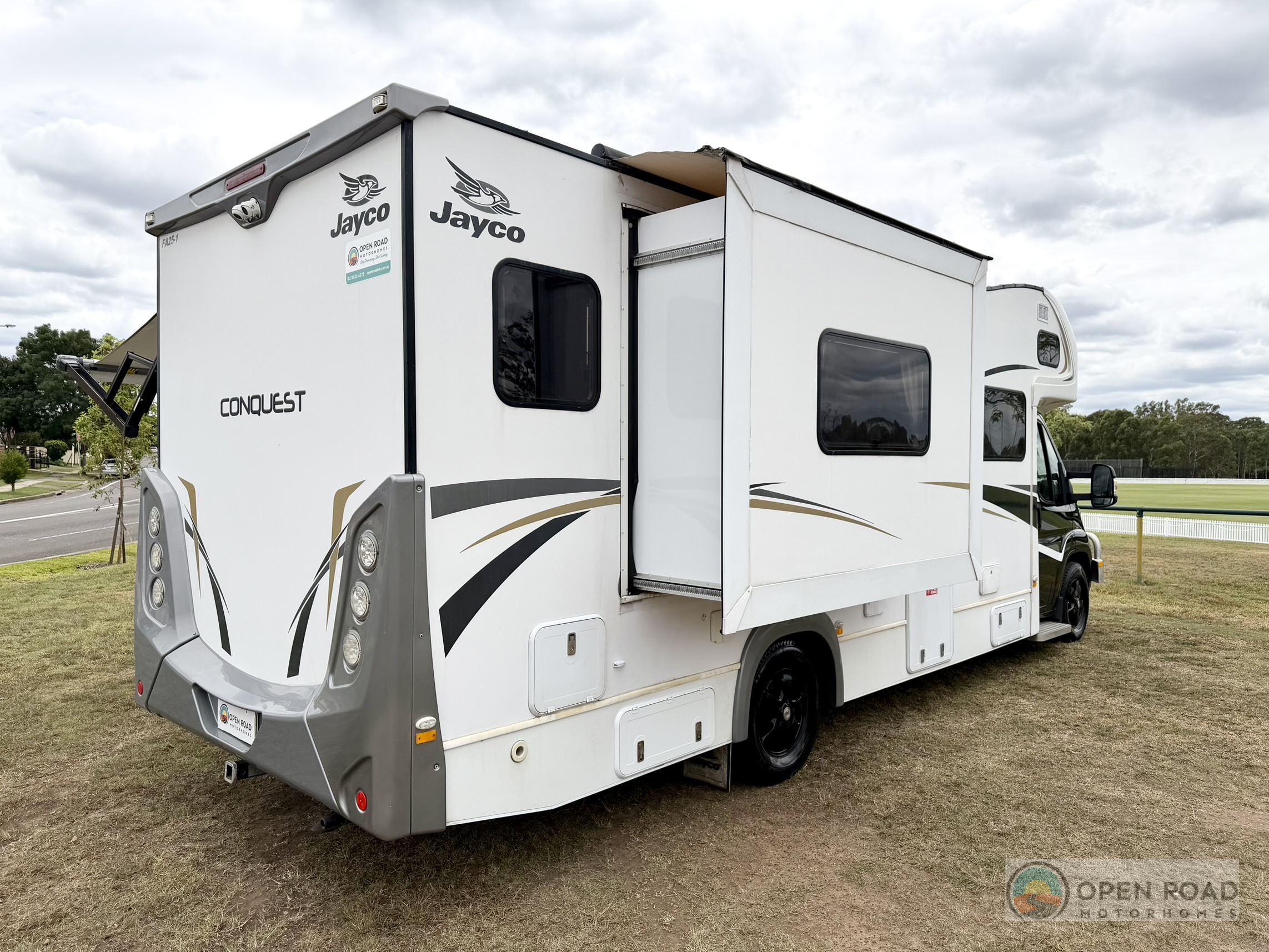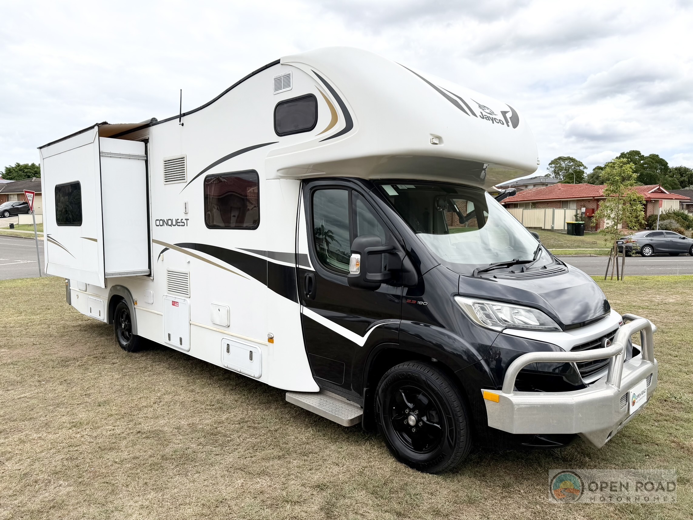 Be quick to secure this stunning example of one of Jayco’s most sought after motorhomes. This 25ft Jayco Conquest is fitted with the spacious slideout bedroom area, ISLAND BED, LARGE BATHROOM, second double bed above the drivers cabin and fully equipped kitchen.