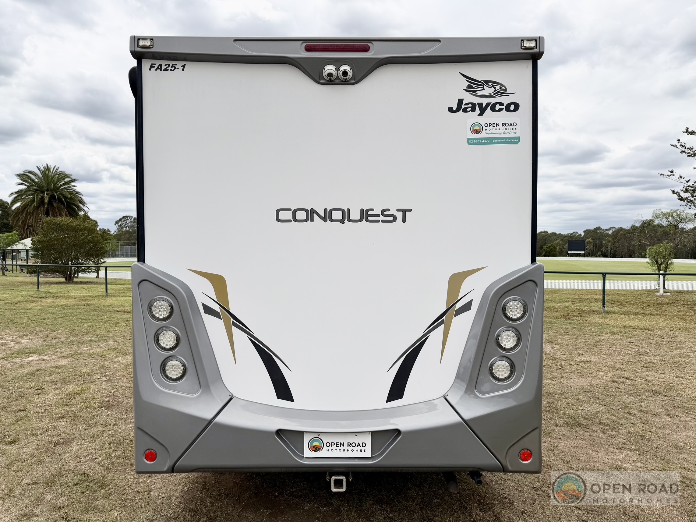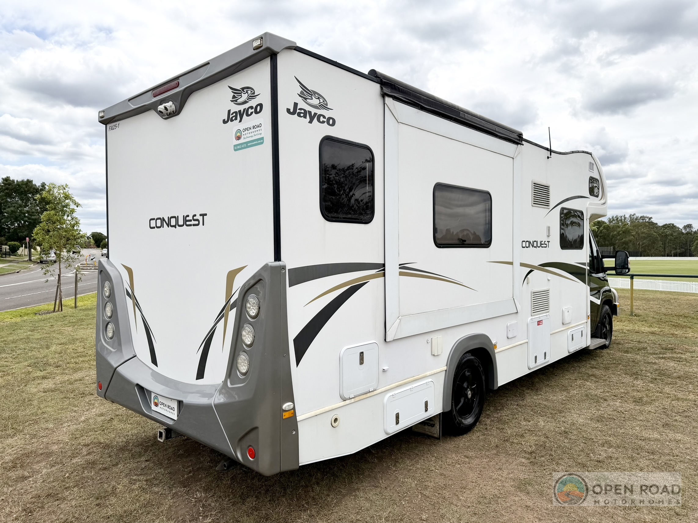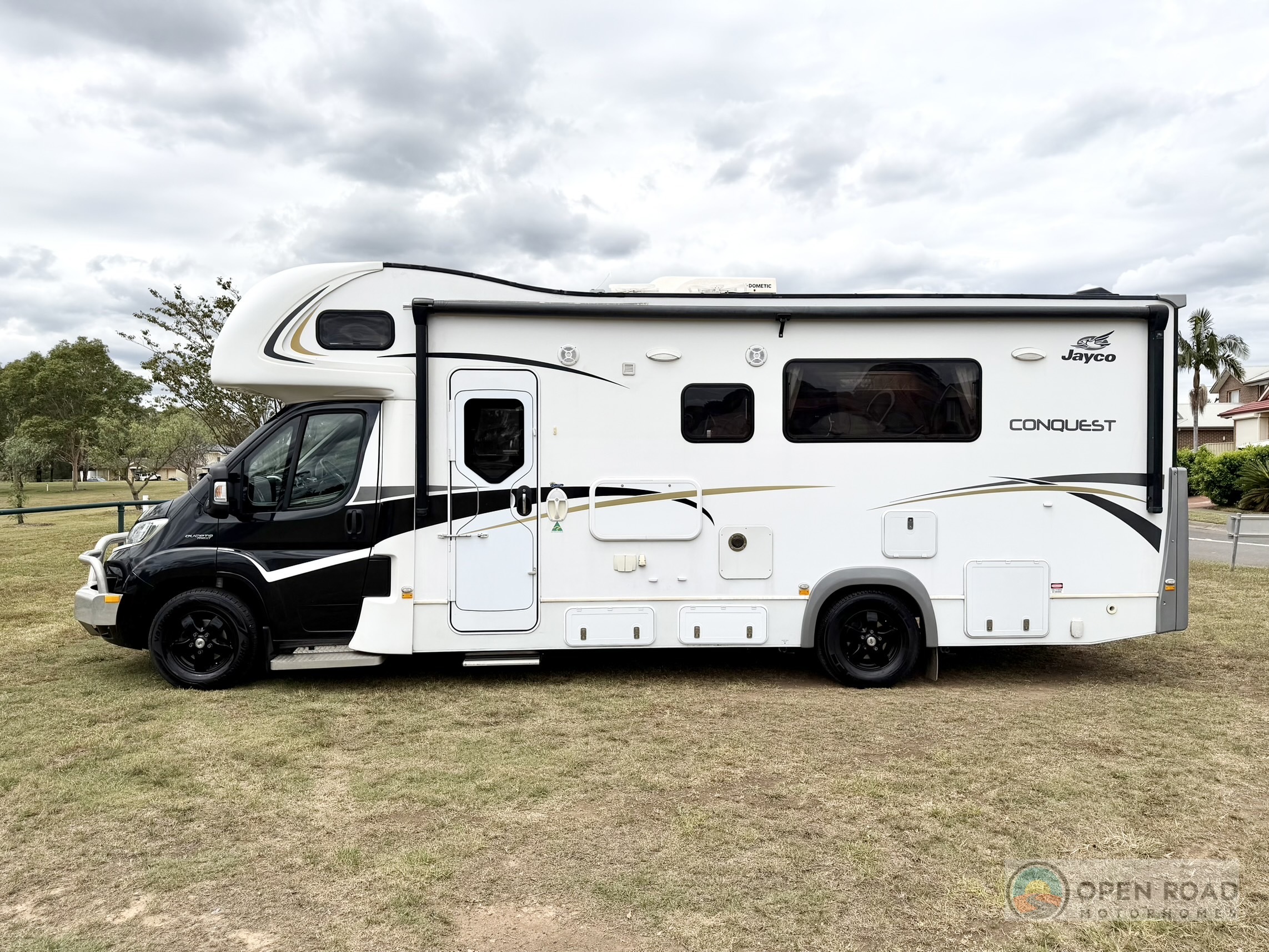 Be quick to secure this stunning example of one of Jayco’s most sought after motorhomes. This 25ft Jayco Conquest is fitted with the spacious slideout bedroom area, ISLAND BED, LARGE BATHROOM, second double bed above the drivers cabin and fully equipped kitchen.