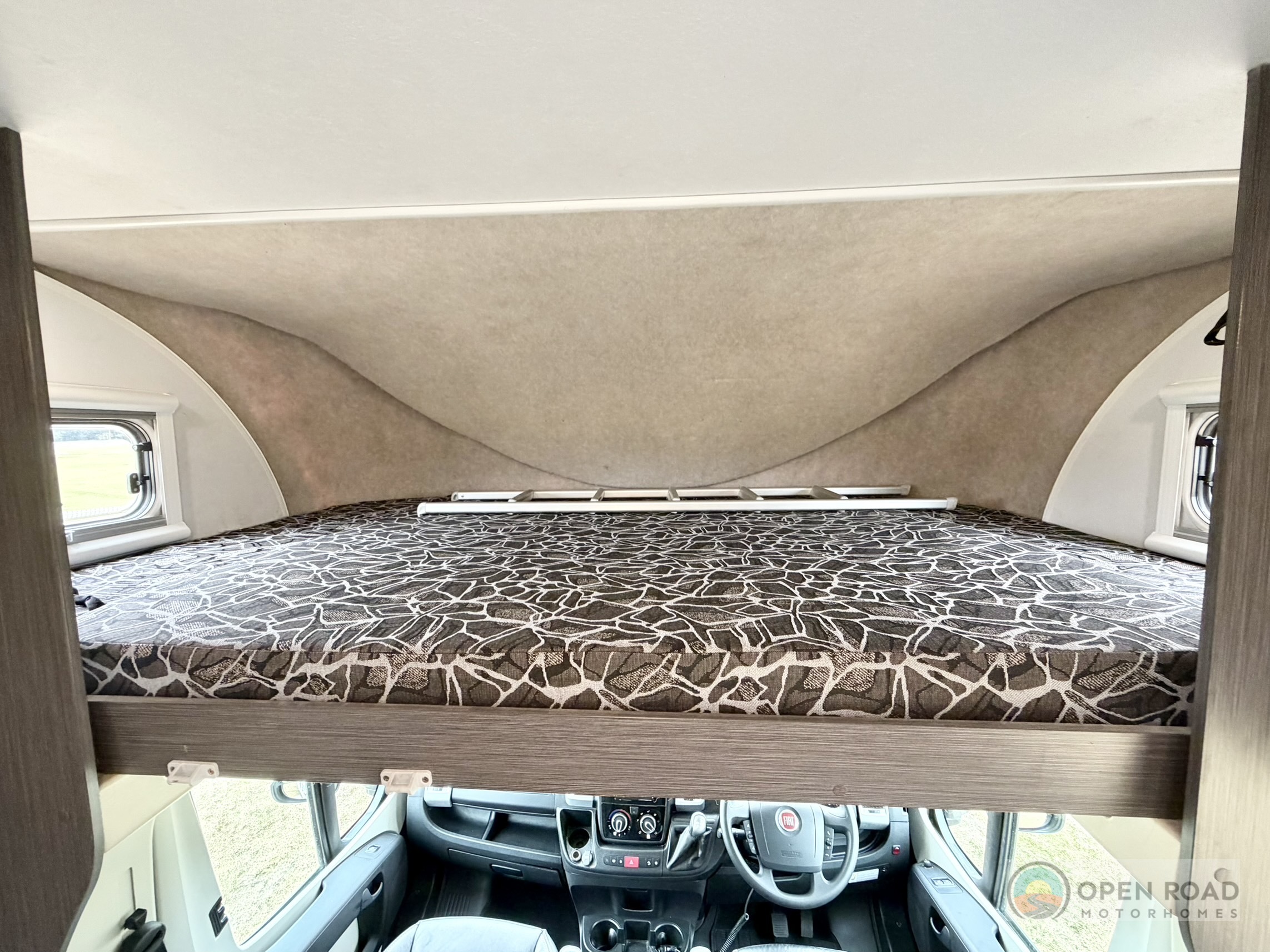 - 2nd Large double bed above the drivers cab for extra storage or guests.