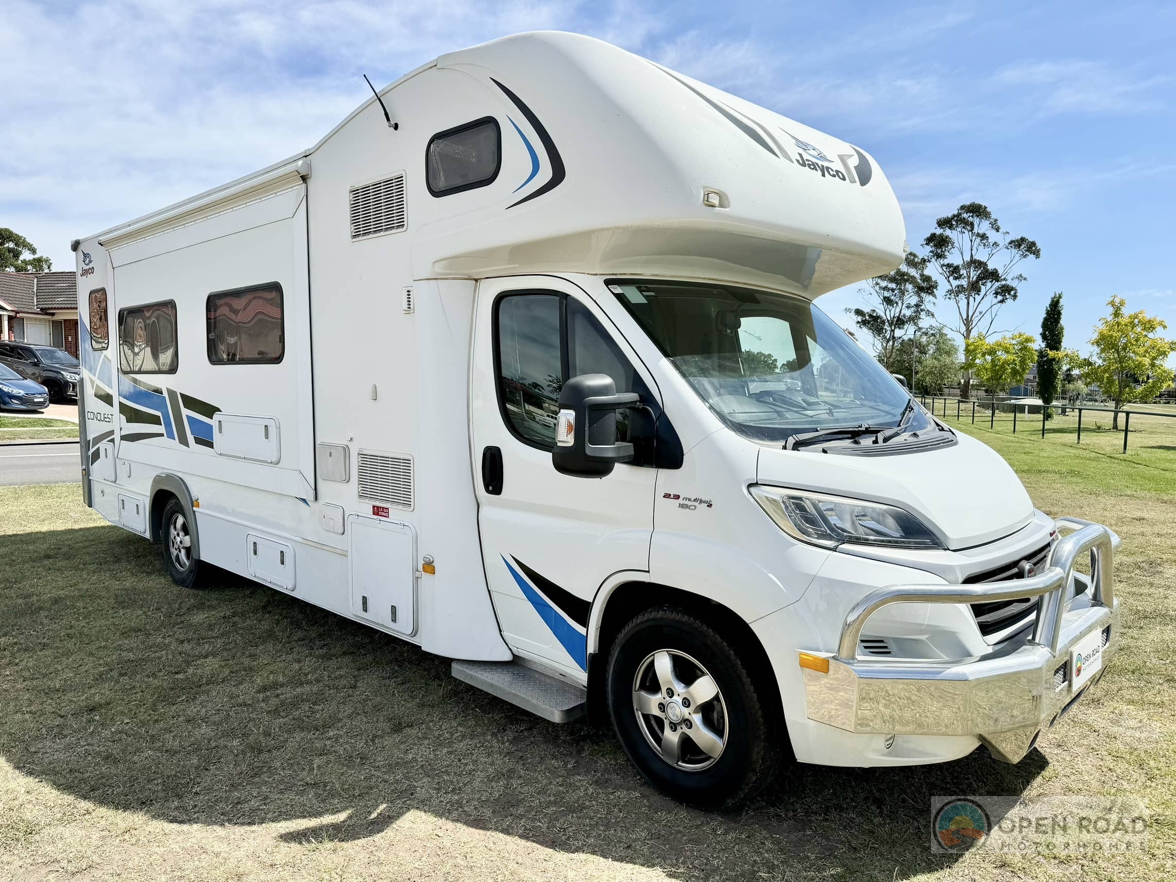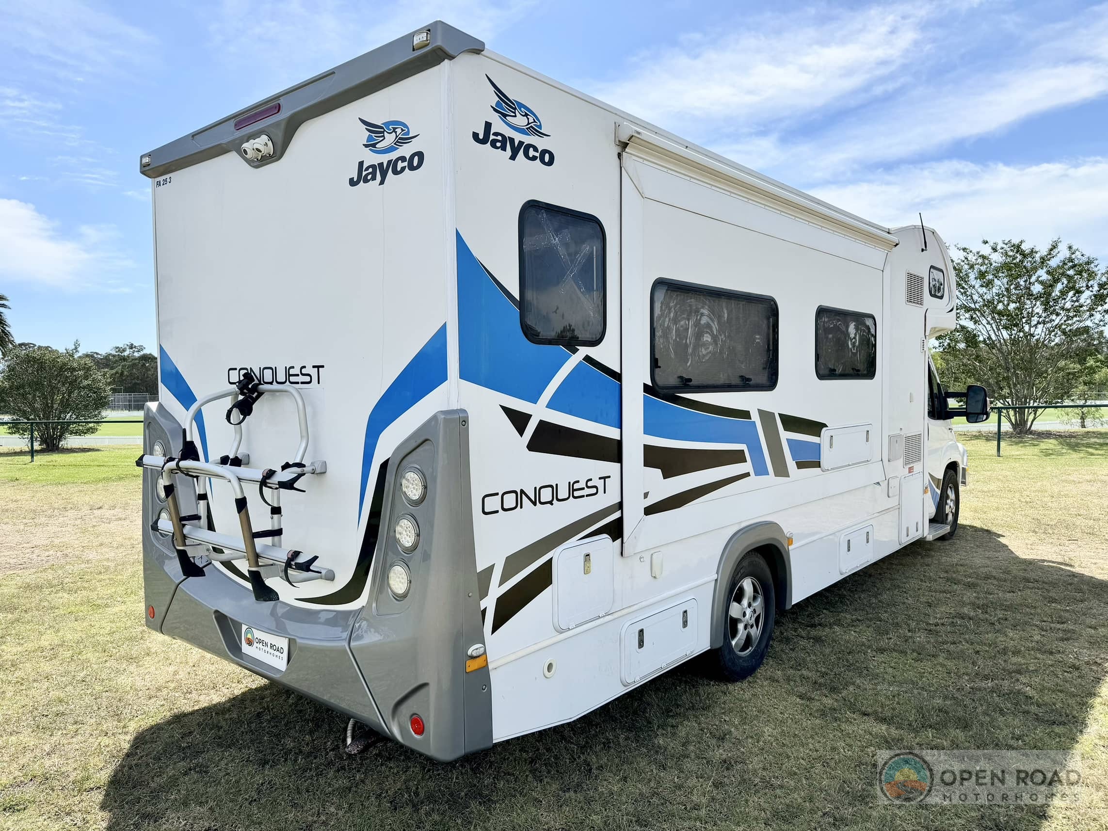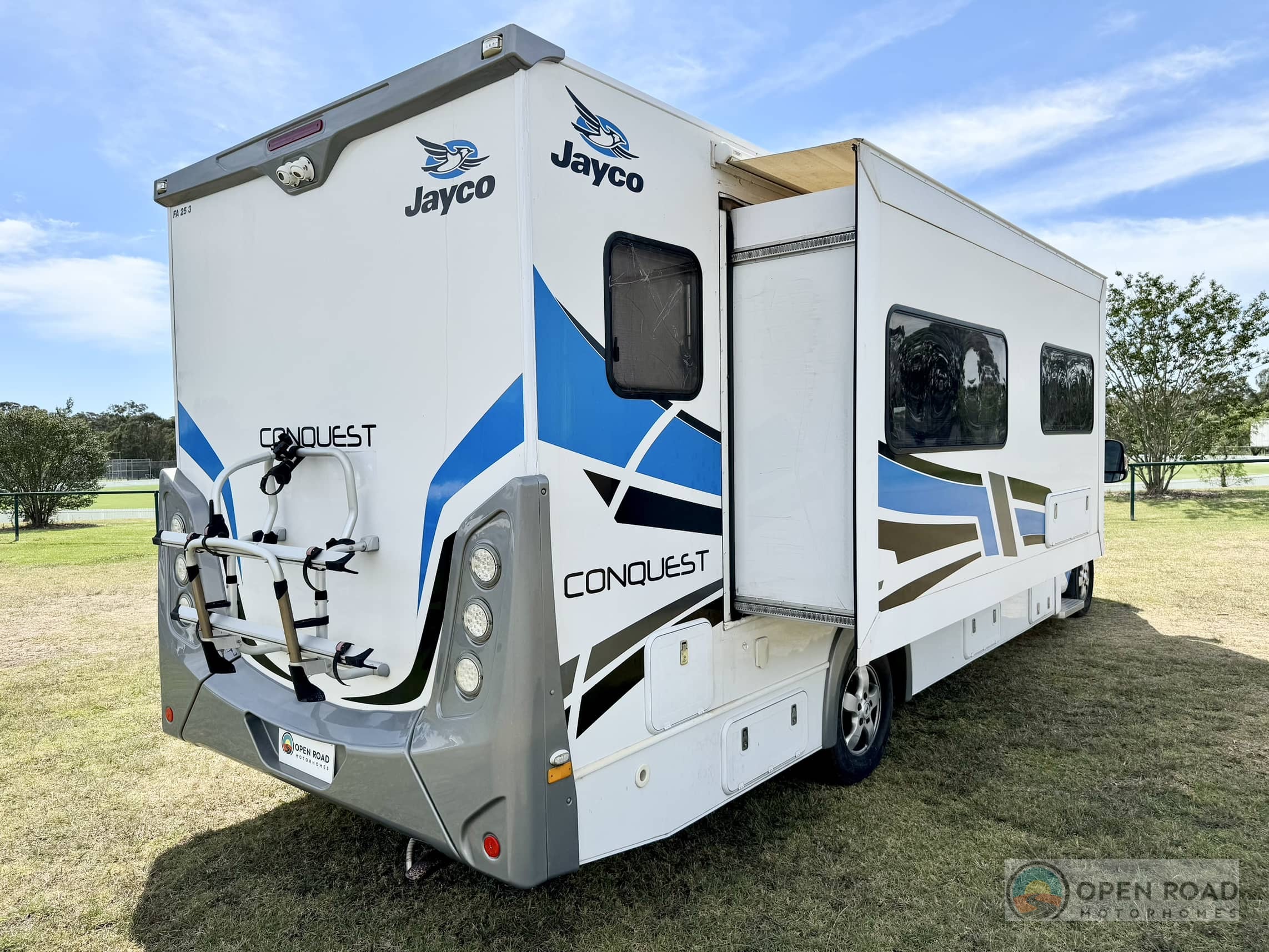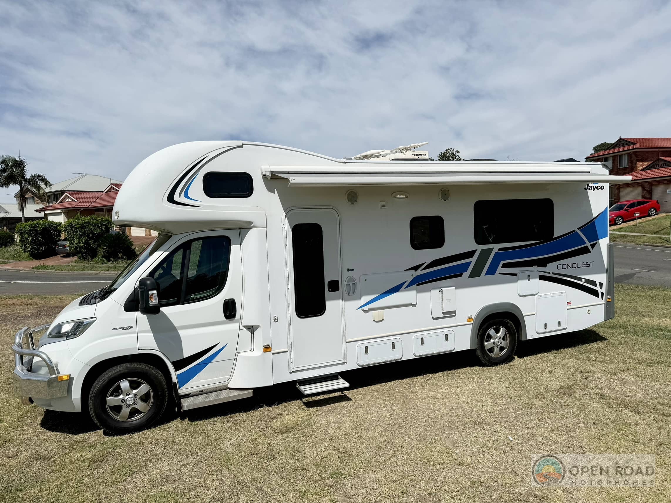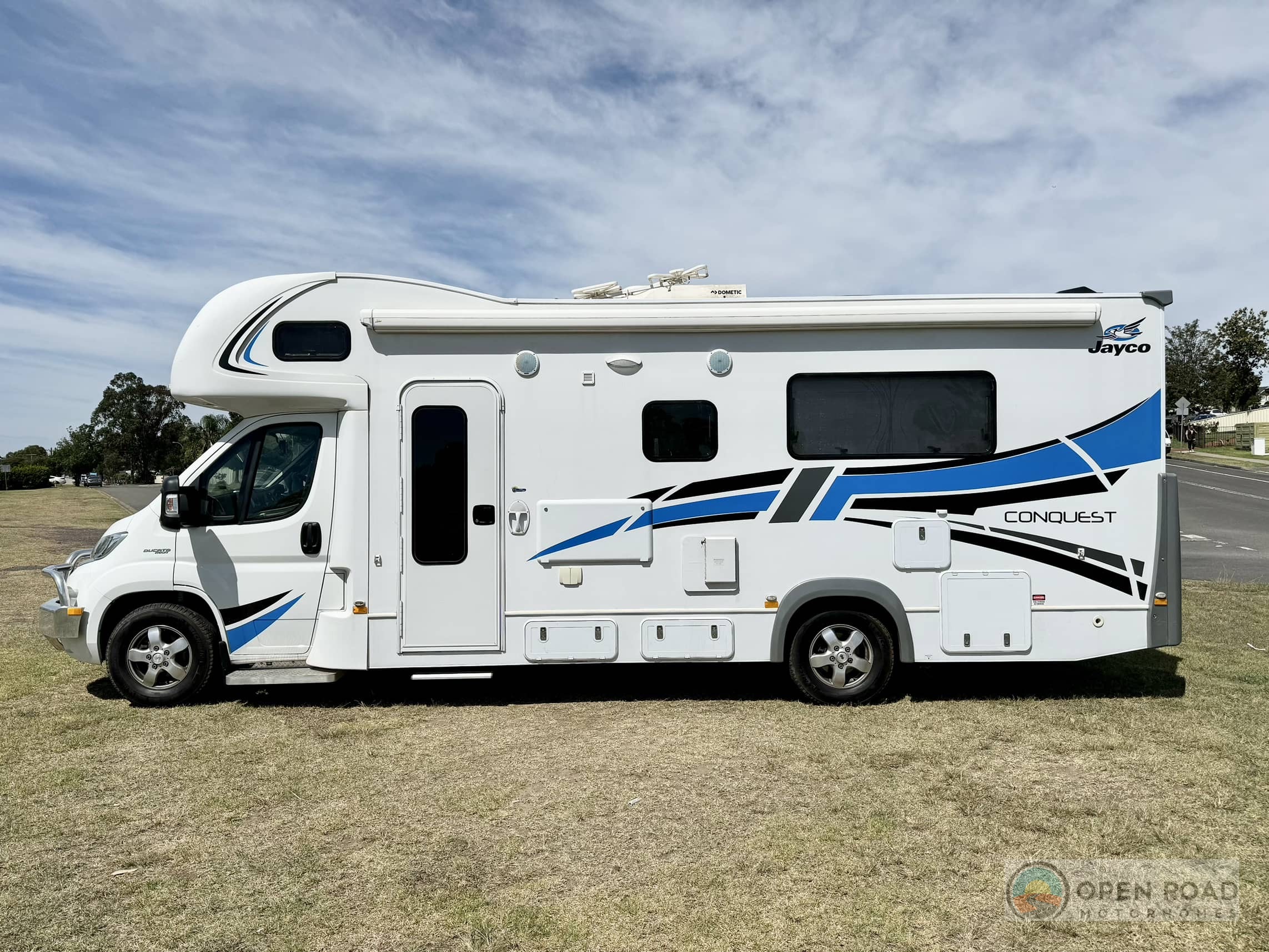 DON’T WAIT! Be quick with this beautiful example of one of Jayco’s most sought after motorhomes. This 25ft Jayco Conquest is fitted with the extra-large slideout bedroom and lounge area, ISLAND BED, LARGE BATHROOM, fully equipped kitchen and heaps of storage above the drivers’ cabin.