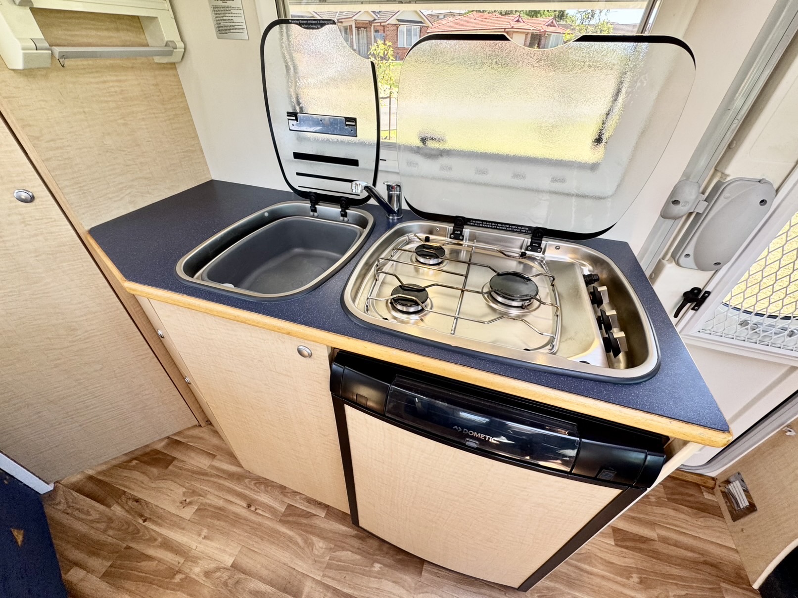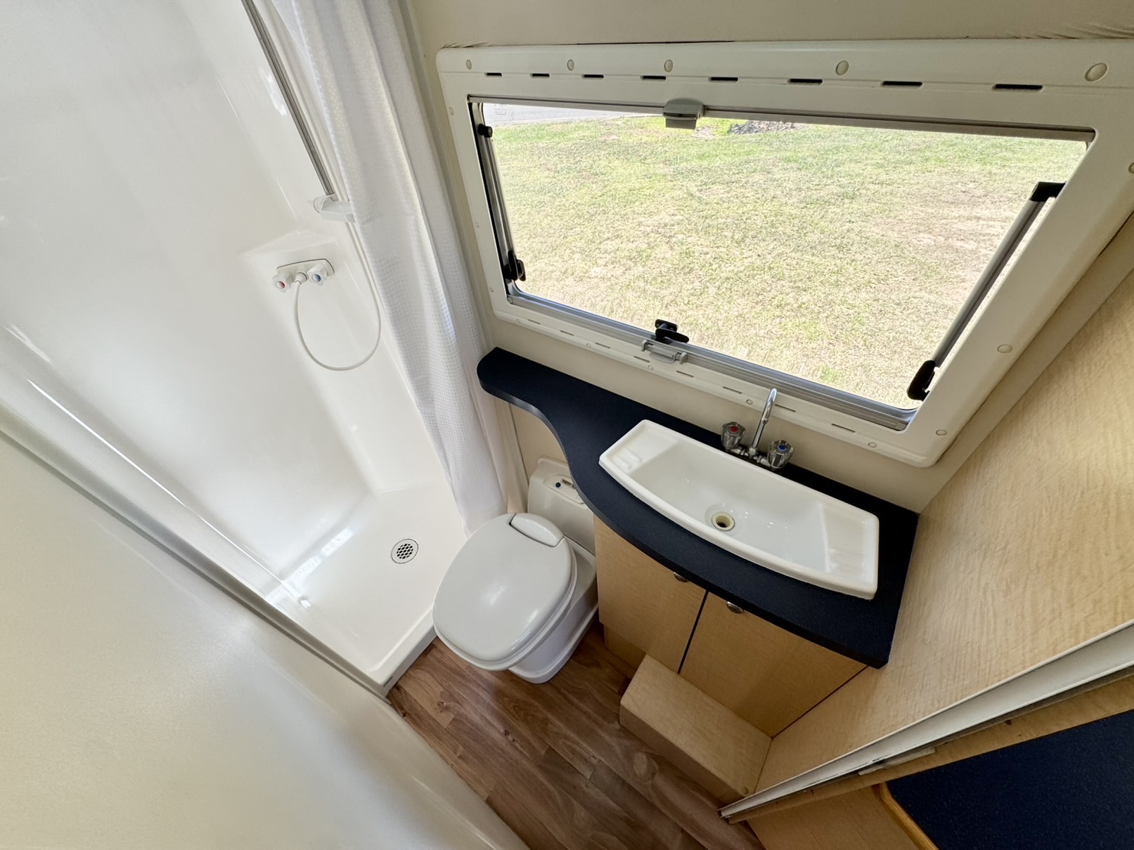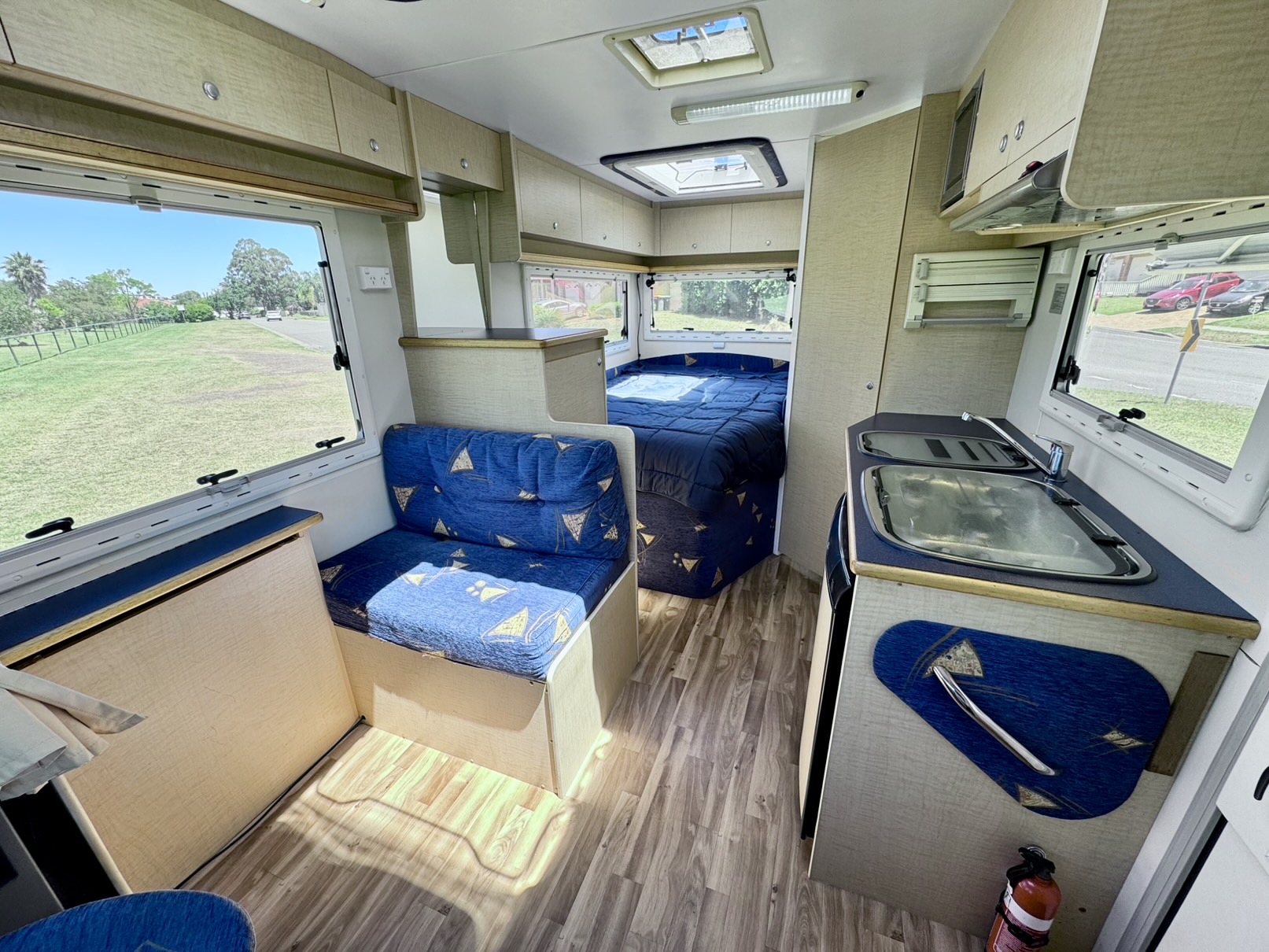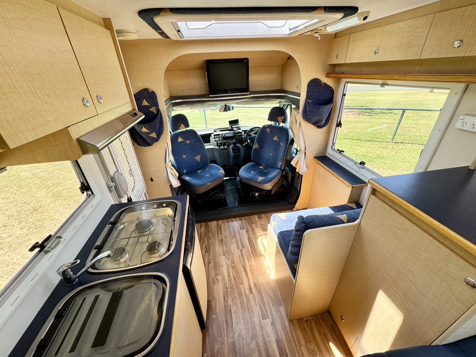 A fantastic COMPACT motorhome with a LARGE BATHROOM and ONLY 2 PRIVATE OWNERs from new. Large permanent double bed, fully equipped kitchen and comfy 4 seat dining area. Small enough to easily drive and park around town yet the clever design makes it spacious to live in.