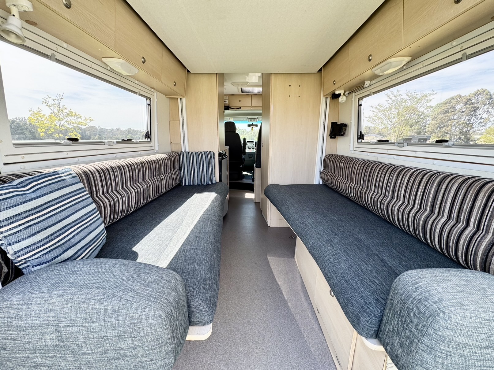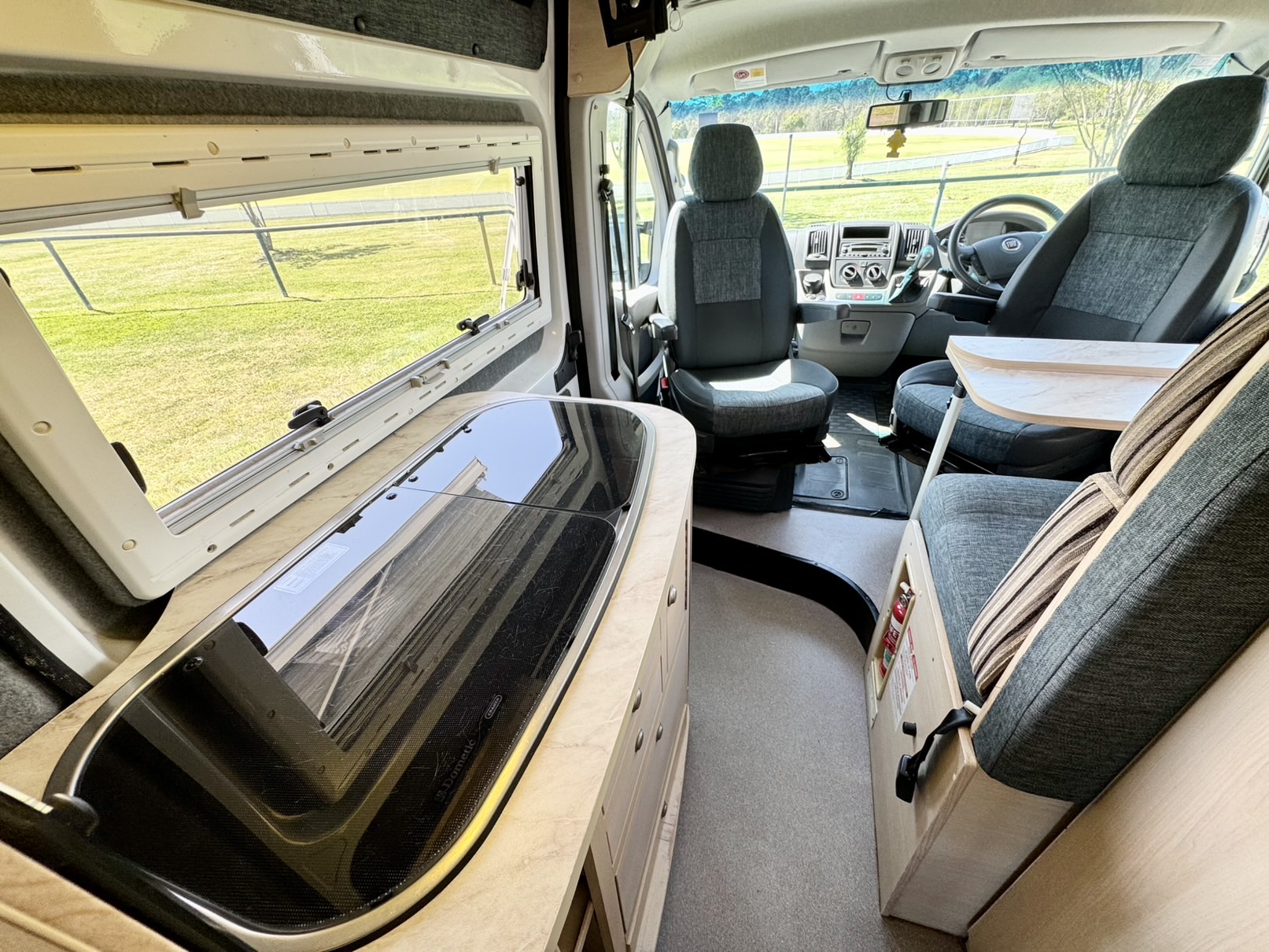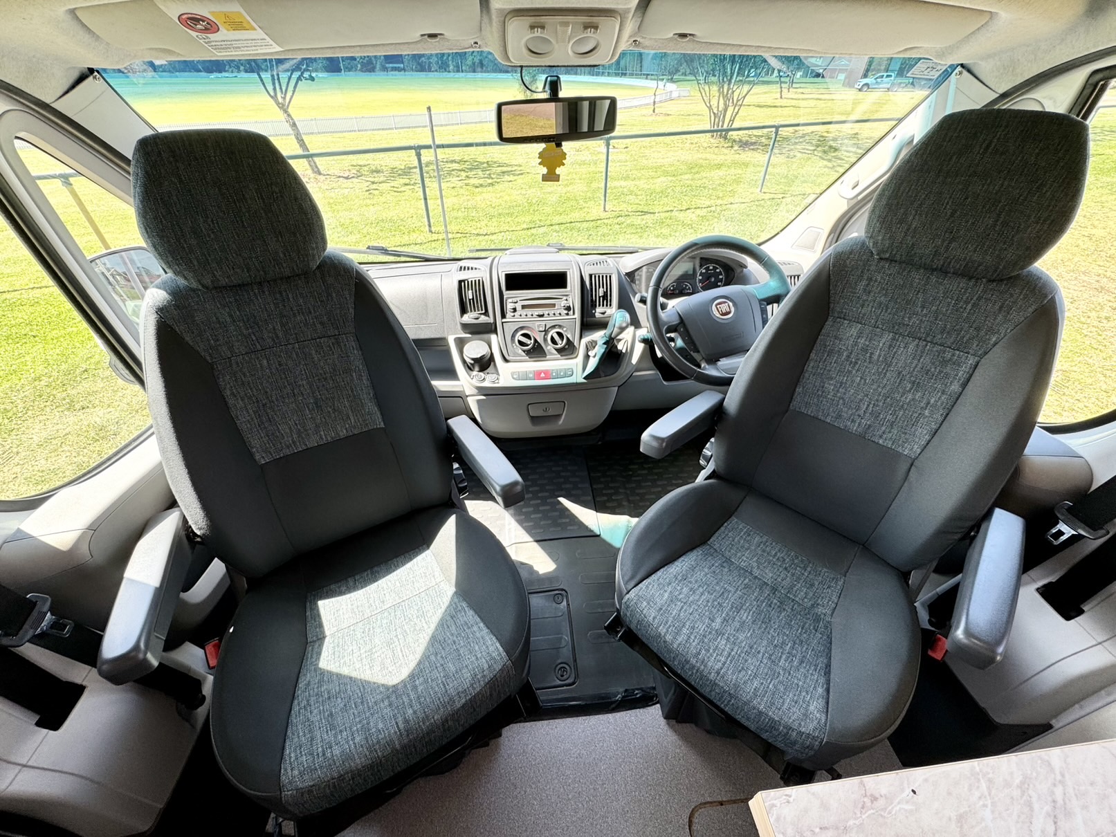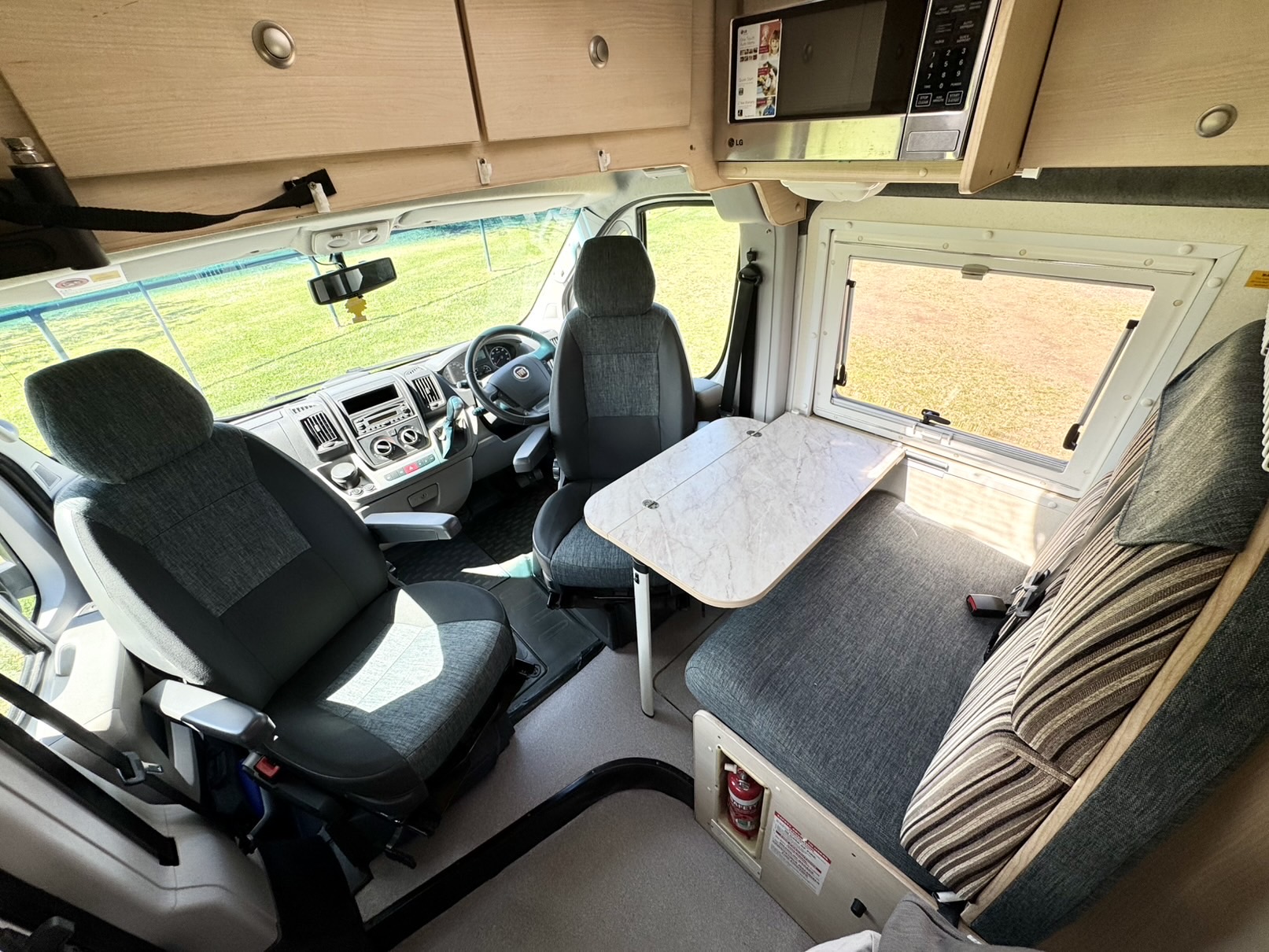 • Swivel driver and passenger seats create a second 4 seat lounge at the front of the motorhome.