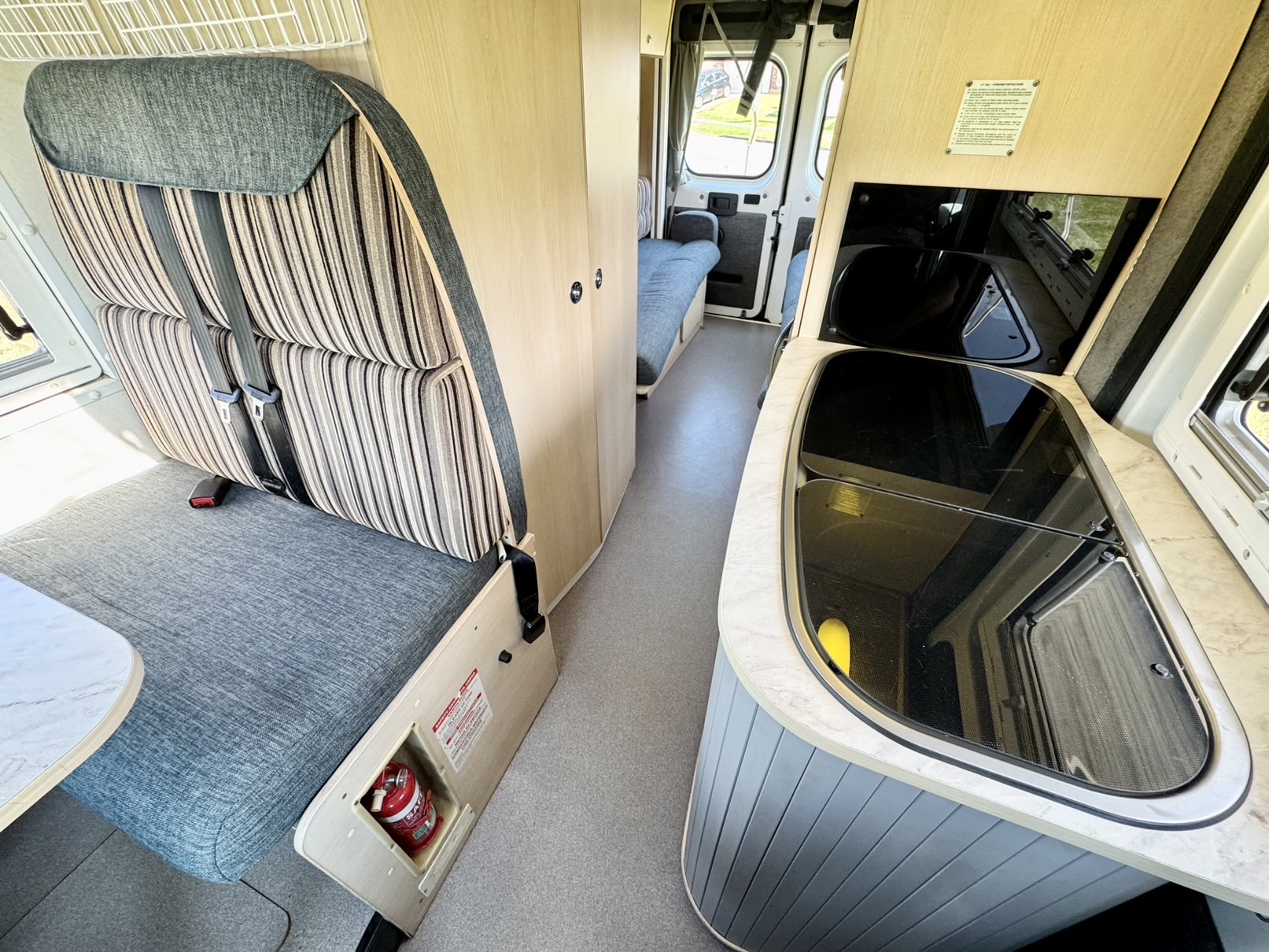 Complete with a fully fitted kitchen, on board spacious bathroom and second 4 seat dining area at the front this compact motorhome offers a huge amount inside.